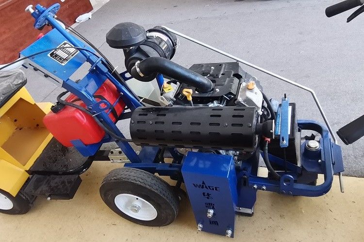 Máy loại bỏ dấu hiệu vỉa hè loại cơ sử dụng động cơ xăng để điều khiển xoay đầu nghiền, để đầu nghiền chà vào phần cong của bề mặt đường,do đó đạt được mục đích làm sạch đường cũ.